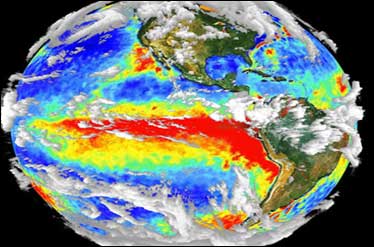 النینیو به طور ساده عبارت است از یک رخداد اقلیمی کلان که در اثر رها شدن انرژی انباشته در بزرگترین حوزه اقیانوسی جهان یعنی جنوب اقیانوس آرام رخ میدهد.نشانه اولیه آن هم تغییر جهت جریان آبهای سرد و گرم و همچنین بادهای این منطقه است.